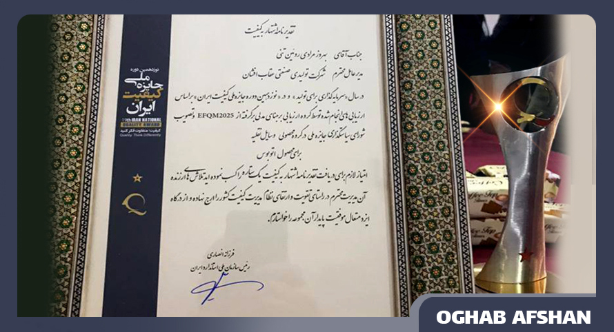 شرکت عقابافشان با کسب تقدیرنامه جایزه ملی کیفیت در همایش امروز، بار دیگر پایبندی خود به استانداردهای ملی و بهبود مستمر کیفیت را اثبات کرد.🥇