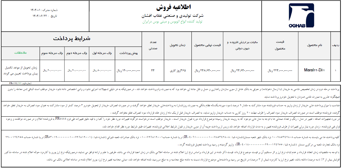 اطلاعیه فروش